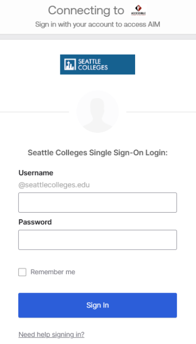 Step1: Please log in to your AIM student profile using your Seattle Colleges credentials (the same one you use for Wi-Fi and email access) https://hayes.accessiblelearning.com/SeattleCentral